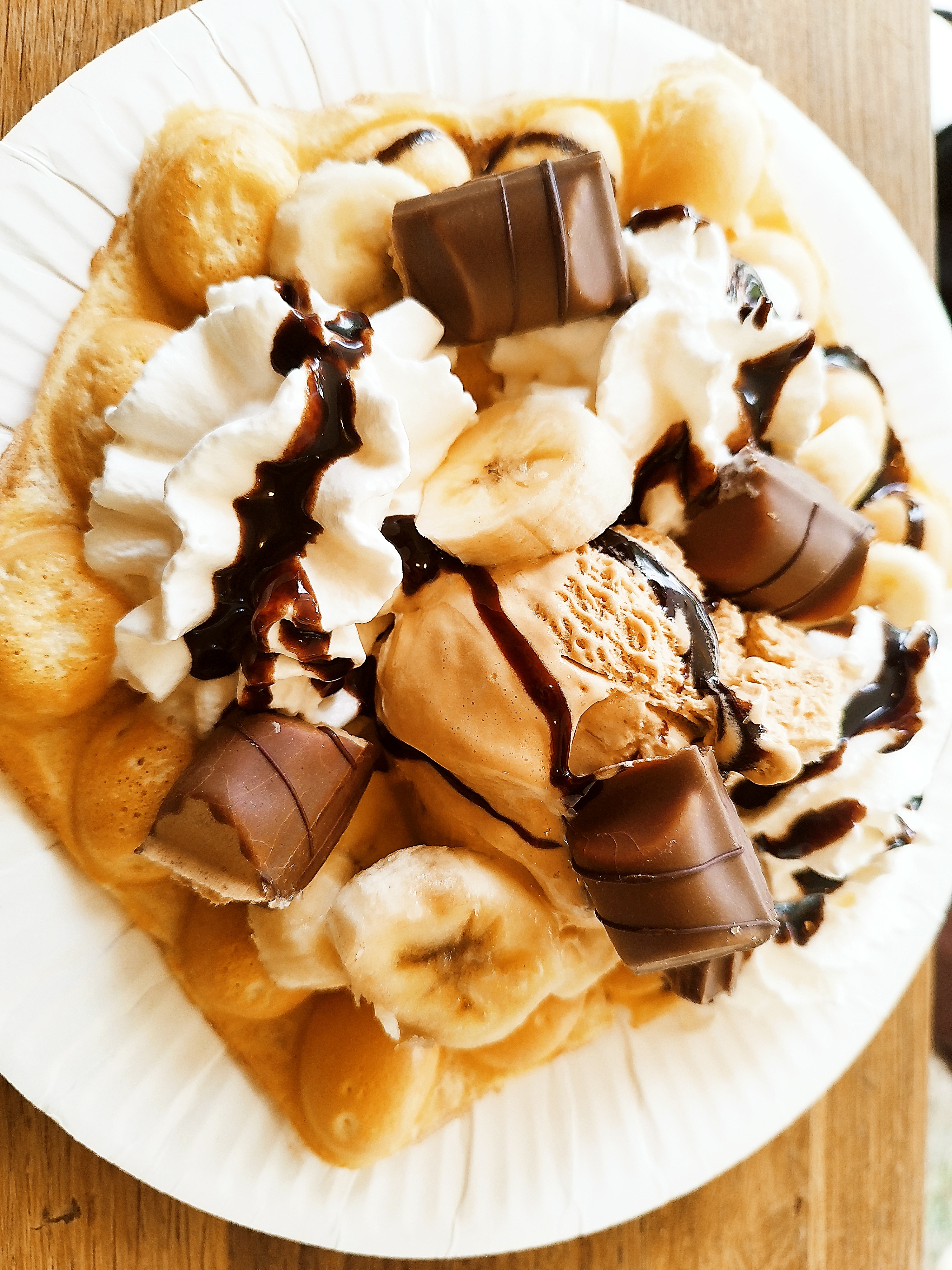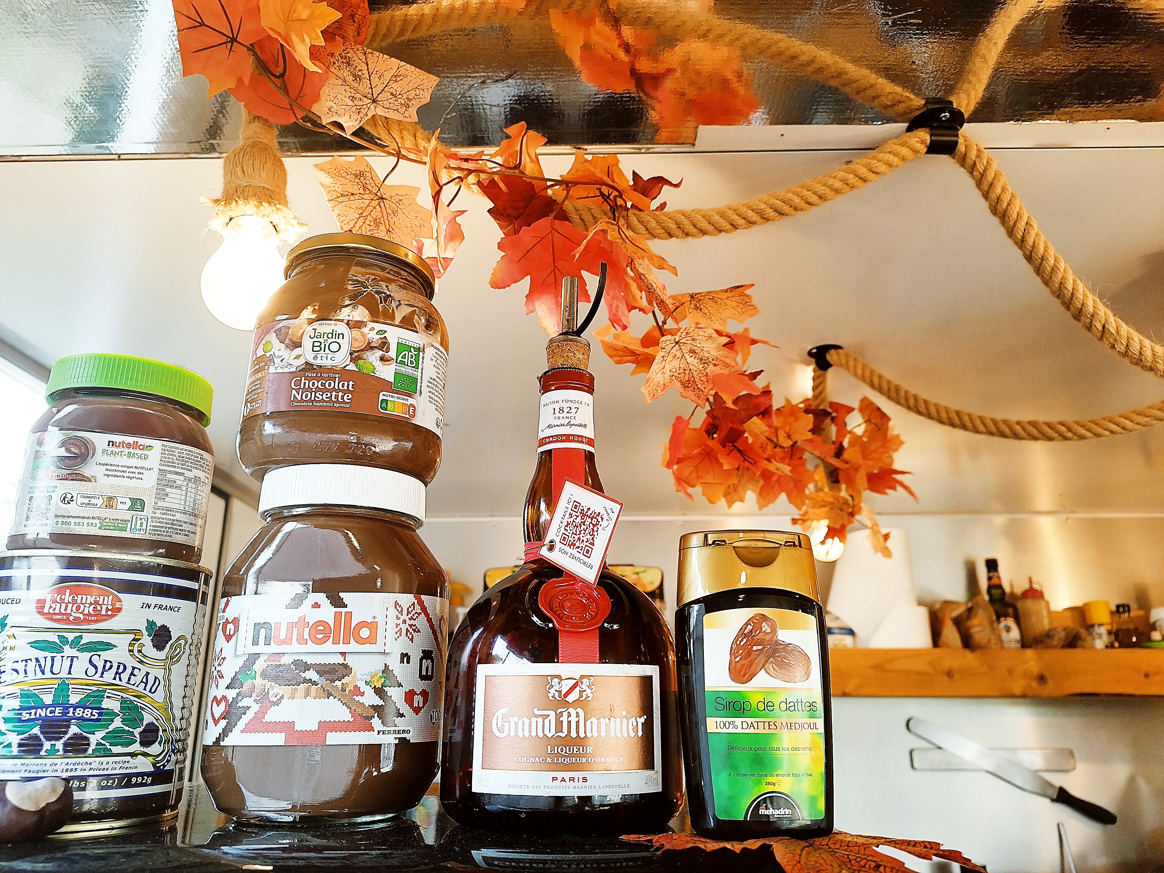 proposant crêpes vanillées, gaufres à bulle vanillées, galette au sarrasin